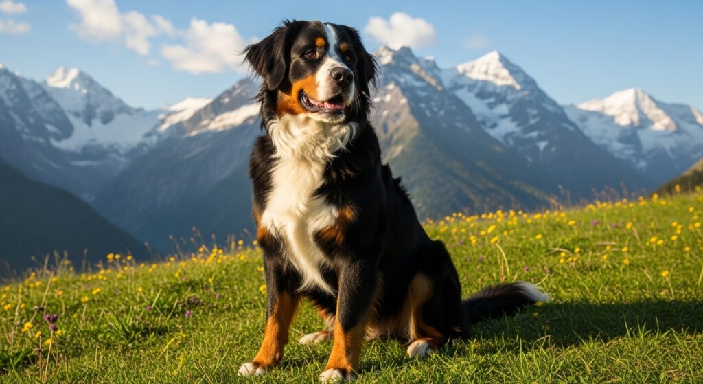 原産国はスイス。アルプス山脈のふもとで、農家の荷車引き・牧畜補助・番犬として働いてきました。