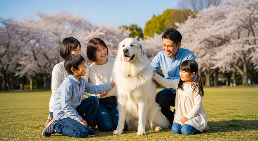 グレート・ピレニーズは、非常に穏やかで忍耐強く、家族愛が深い超大型犬です。