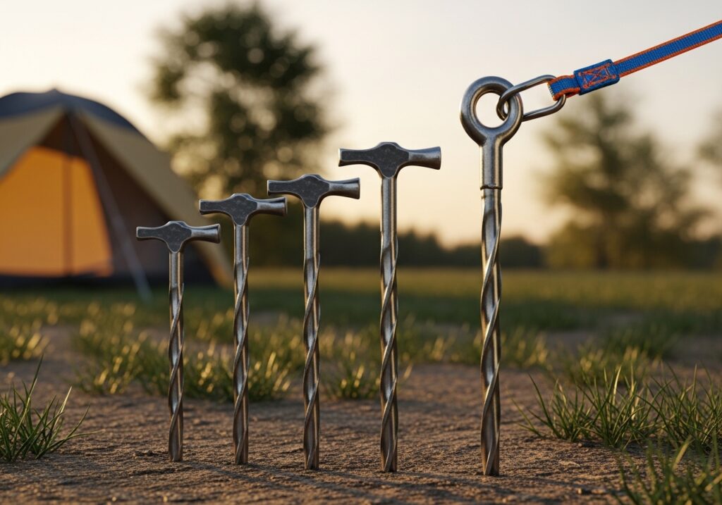 形をよく見て選ぶことで、テントやタープをしっかり安全に固定できます。