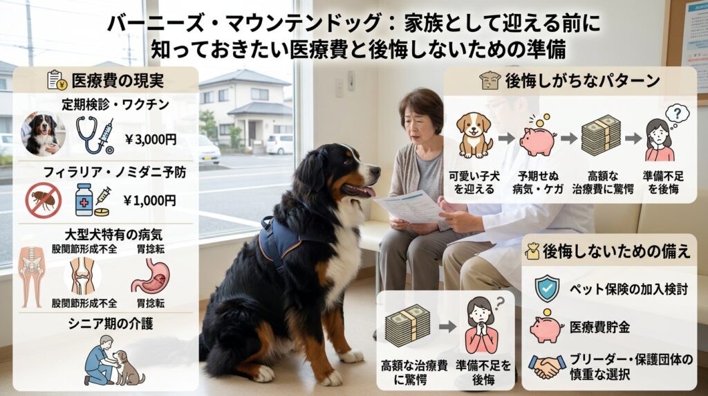 ババーニーズ・マウンテン・ドッグの医療費は、現実的に高額へ振れる可能性があります。
